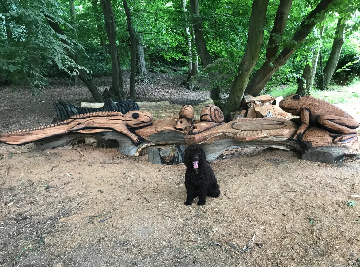 Courtesy of a much-appreciated initiative by Thames 21 a highly skilled chainsaw operating tree carver arrived in the park and has created some wonderful additions out of a fallen dead tree. What appears at first glance to be some sort of Jurassic creature, a stranger to our park, turns out to be on closer inspection a rather large newt and they are of course part of the wildlife of the park. It is hoped that we will also get a Heron carved out of another tree. This montage has been cleverly created and will appeal to children but there has been a suggestion that as the newt is quite large the group should be divided up and spread around various locations in the park so they will fit in better and be seen by more people as not all our visitors use the Seaforth gate. Please let us know what you think.